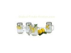Embossed 16oz glass mason jar mugs with handles , metal lids